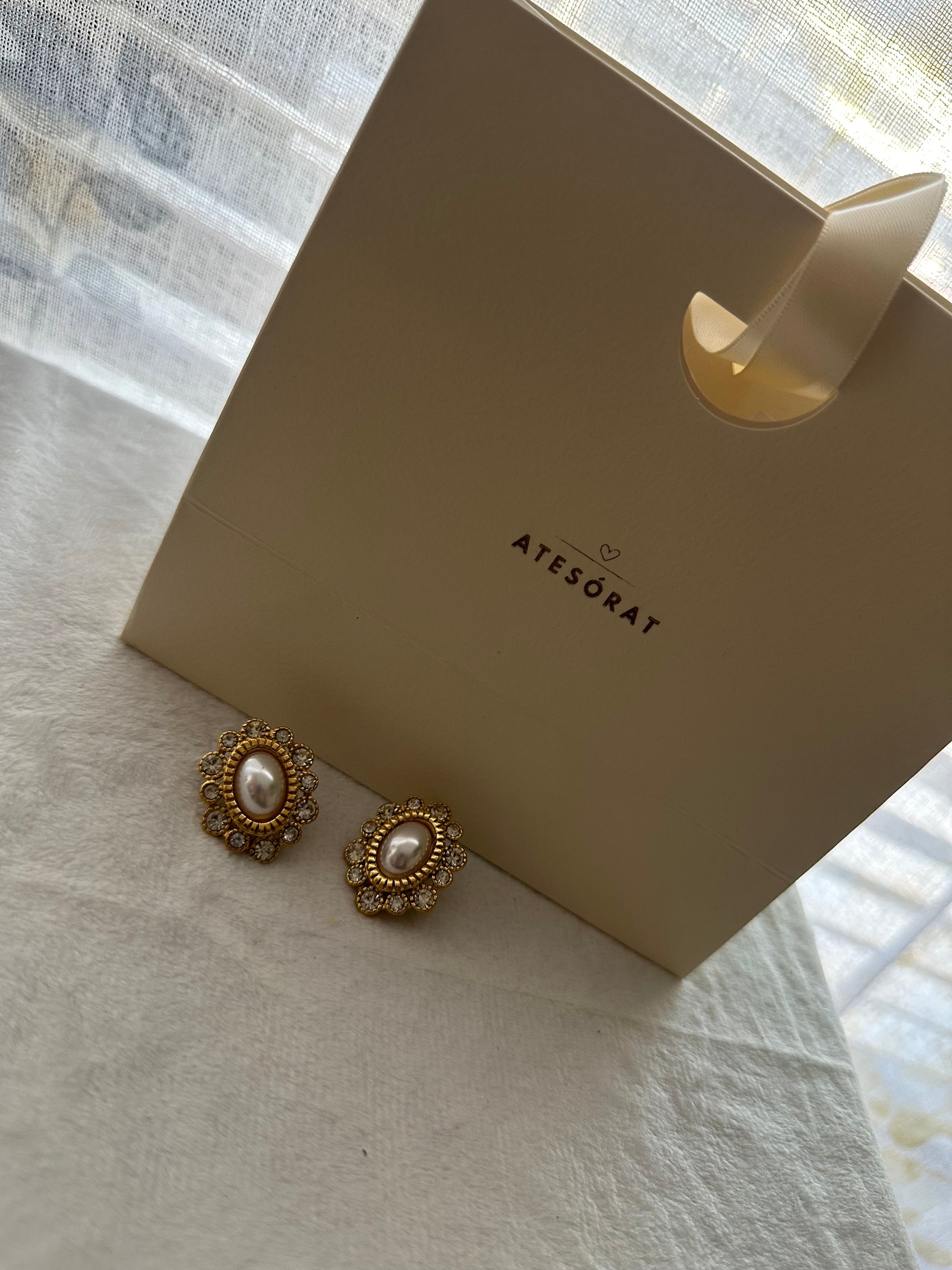 Descubre la belleza clásica de nuestros aretes estilo vintage con perla, una pieza creada para elevar cualquier look con un toque de sofisticación. Su diseño ovalado en tono dorado, rodeado de delicados detalles y destellos brillantes, los convierte en un accesorio perfecto tanto para el día como para la noche.