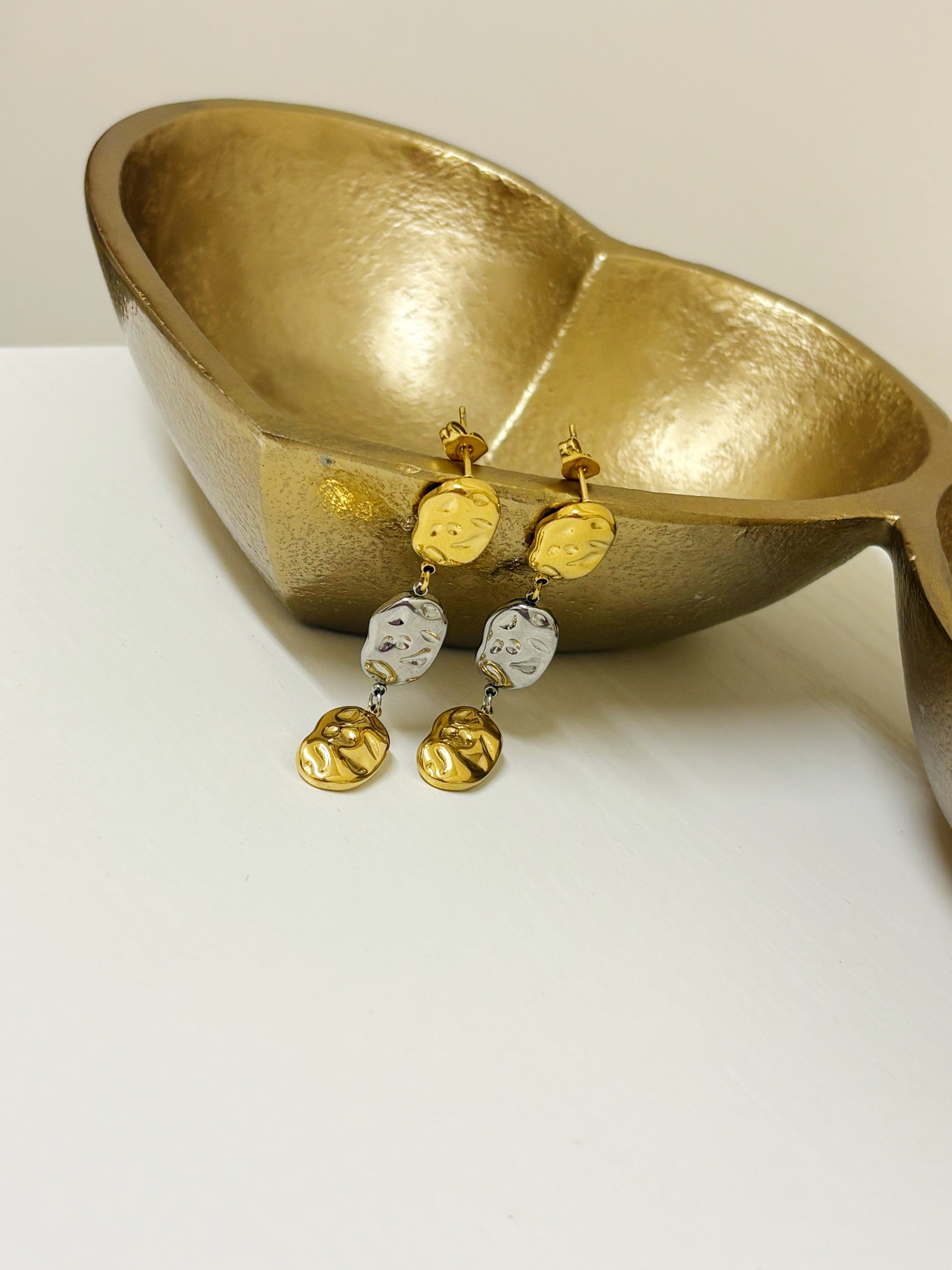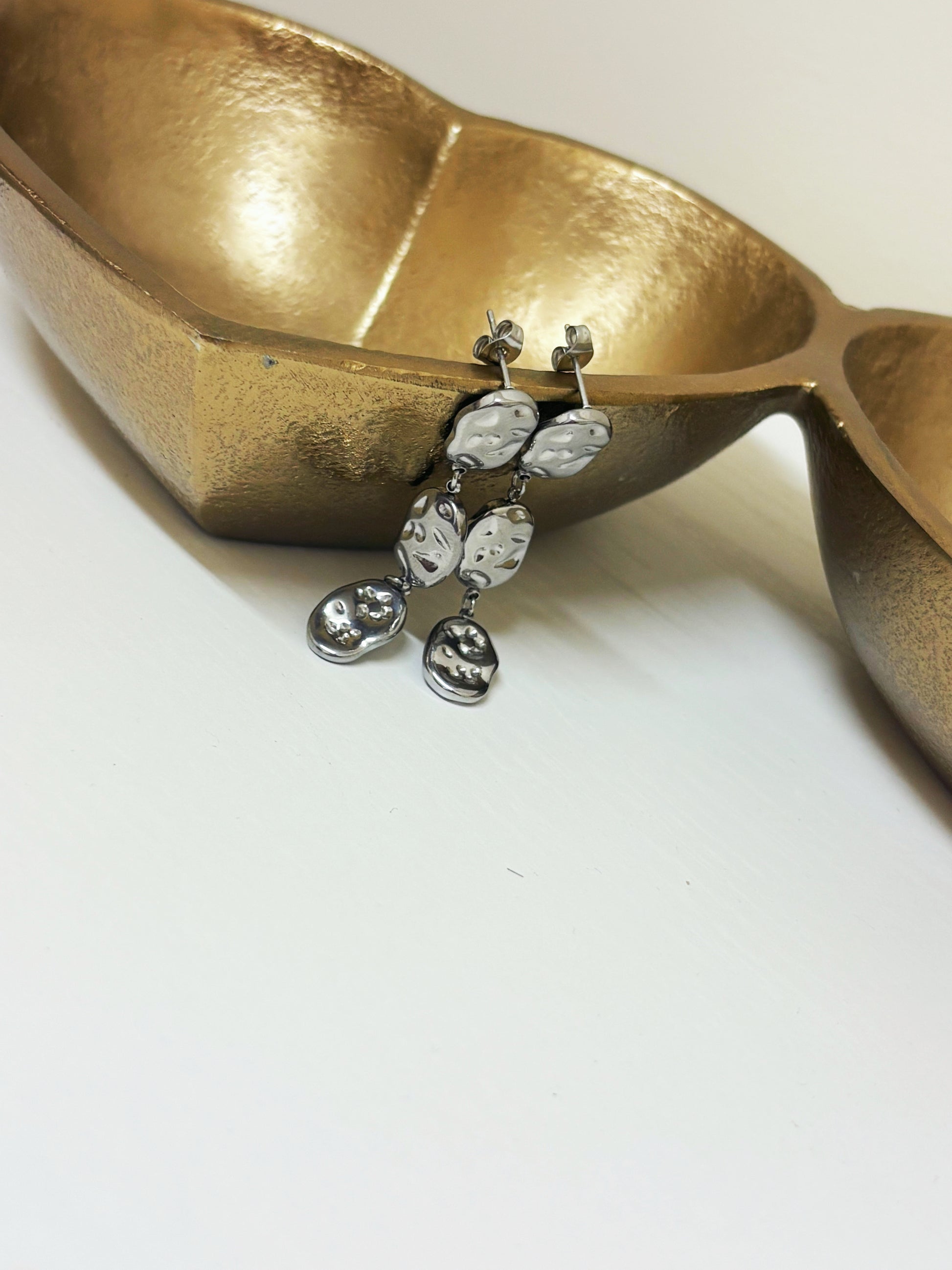 Turn heads with these bold and artistic silver drop earrings, featuring a cascading trio crafted with a high-shine finish and a sculptural, fluid form, these earrings bring a modern, artsy edge to any look. Lightweight yet eye-catching, they're perfect for dressing up a minimalist outfit or adding a creative flair to your everyday style.
