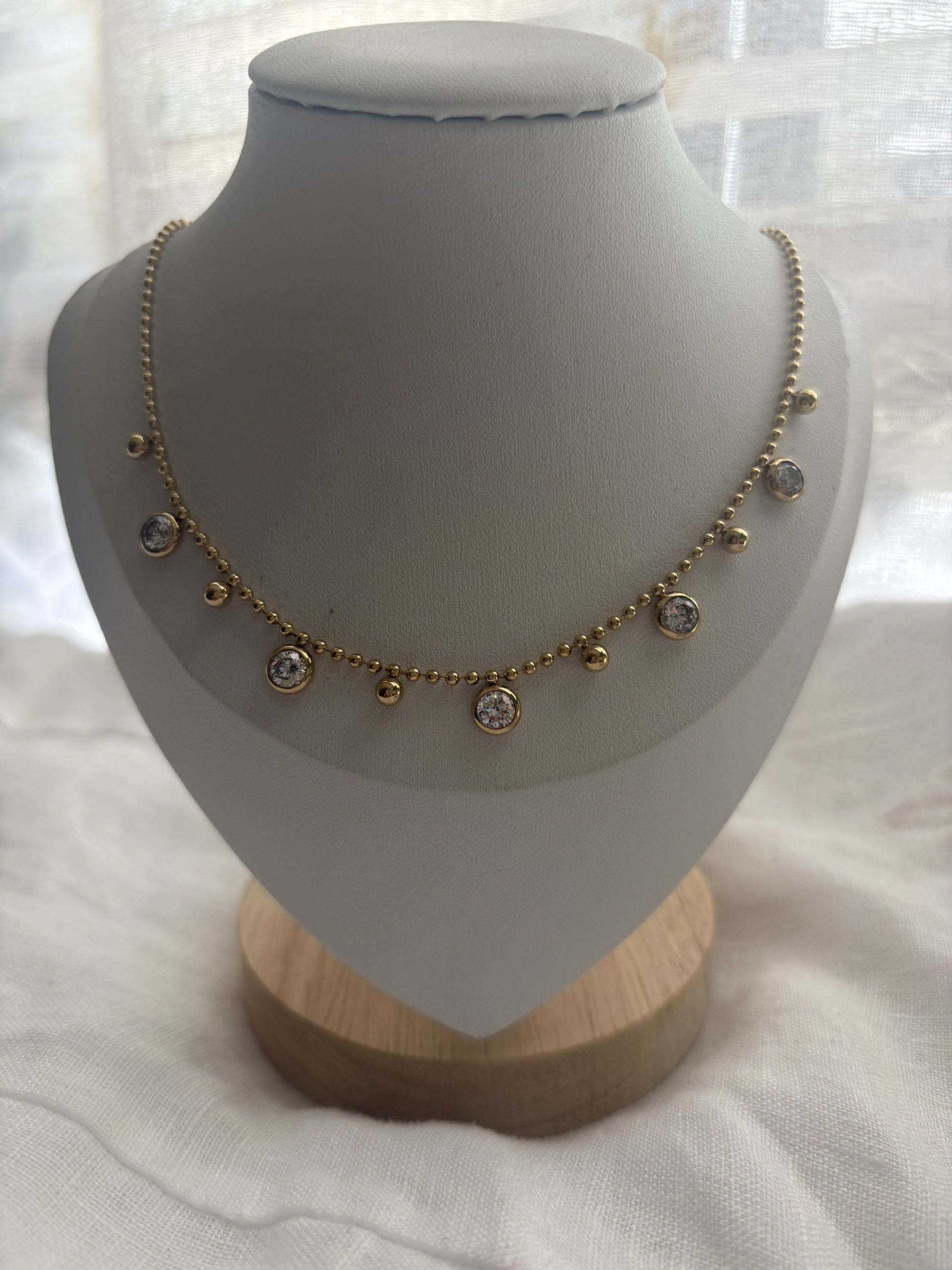 Add a touch of timeless elegance to your look with this beautifully crafted gold beaded necklace. The design strikes a perfect balance between classic and contemporary, making it ideal for both everyday wear and special occasions.